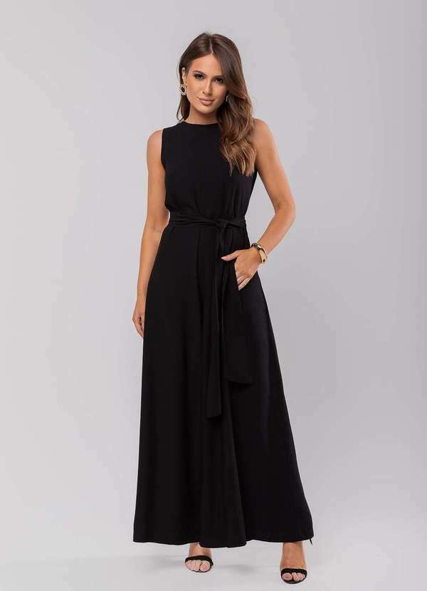 Macacão Regata Feminino Alfaiataria Pantalona Salvatore Fashion Preto
