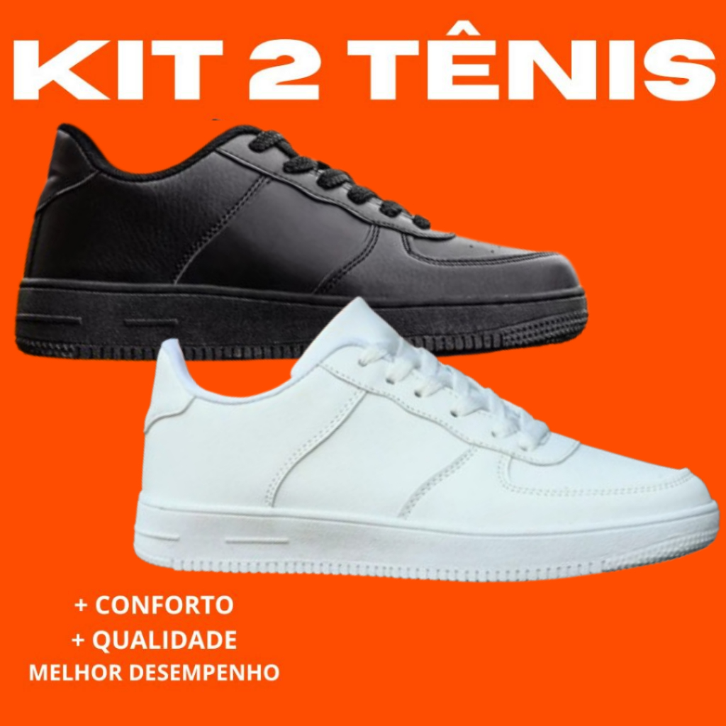kit 2 Tenis Masculino Feminino Casual Academia Branco ou Preto Confortável Top