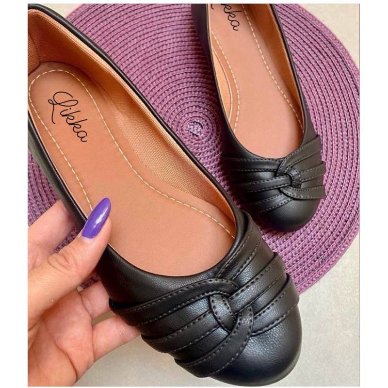 Sapatilha Feminina Bico Redondo Preta e Nude Leve Delicada Confortável