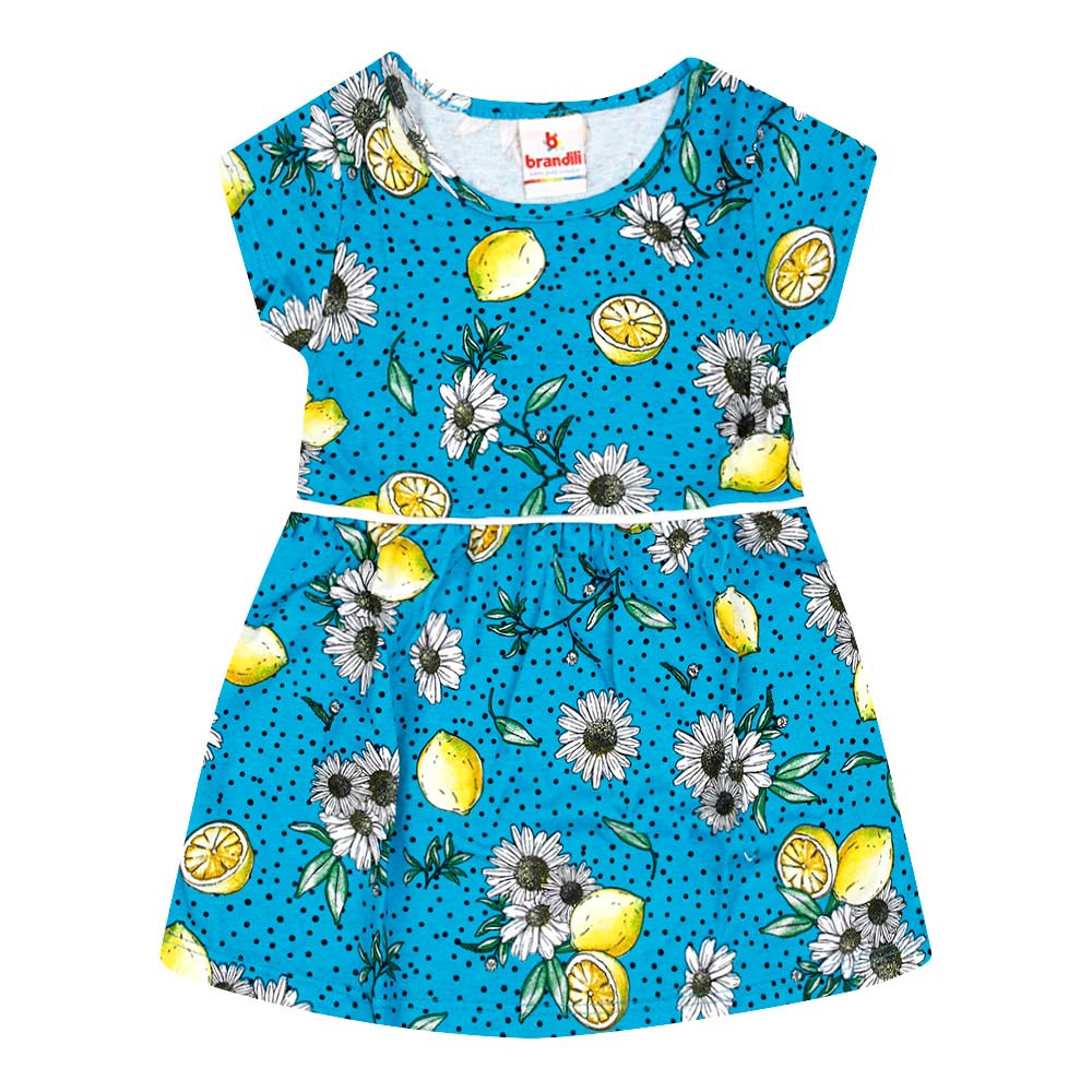 Vestido Bebê Manga Curta Meia Malha Turquesa Limões (1/2/3) - Brandili