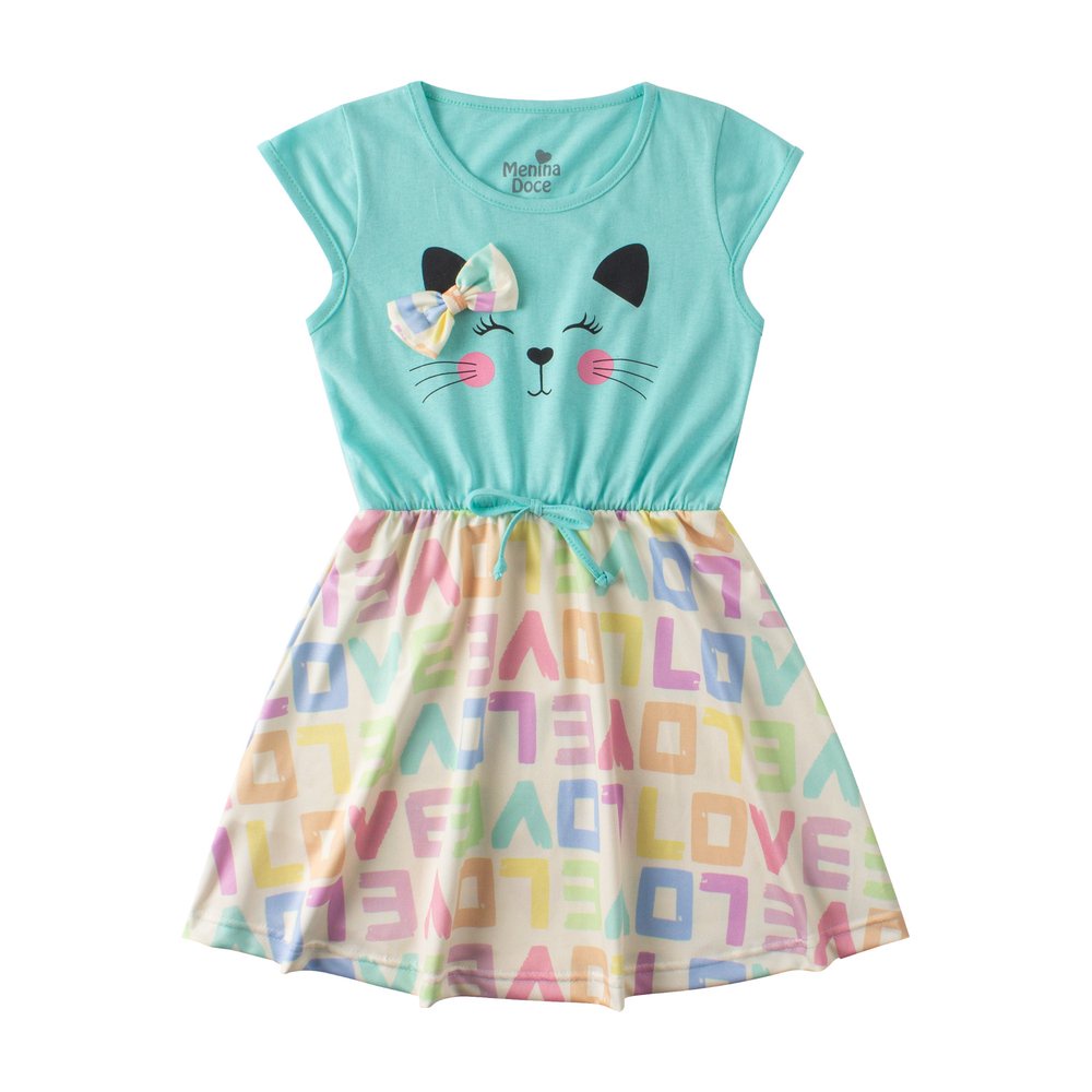 Vestido Infantil Feminino Meia Malha/Suplex Sublimado Cat - Menina Doce