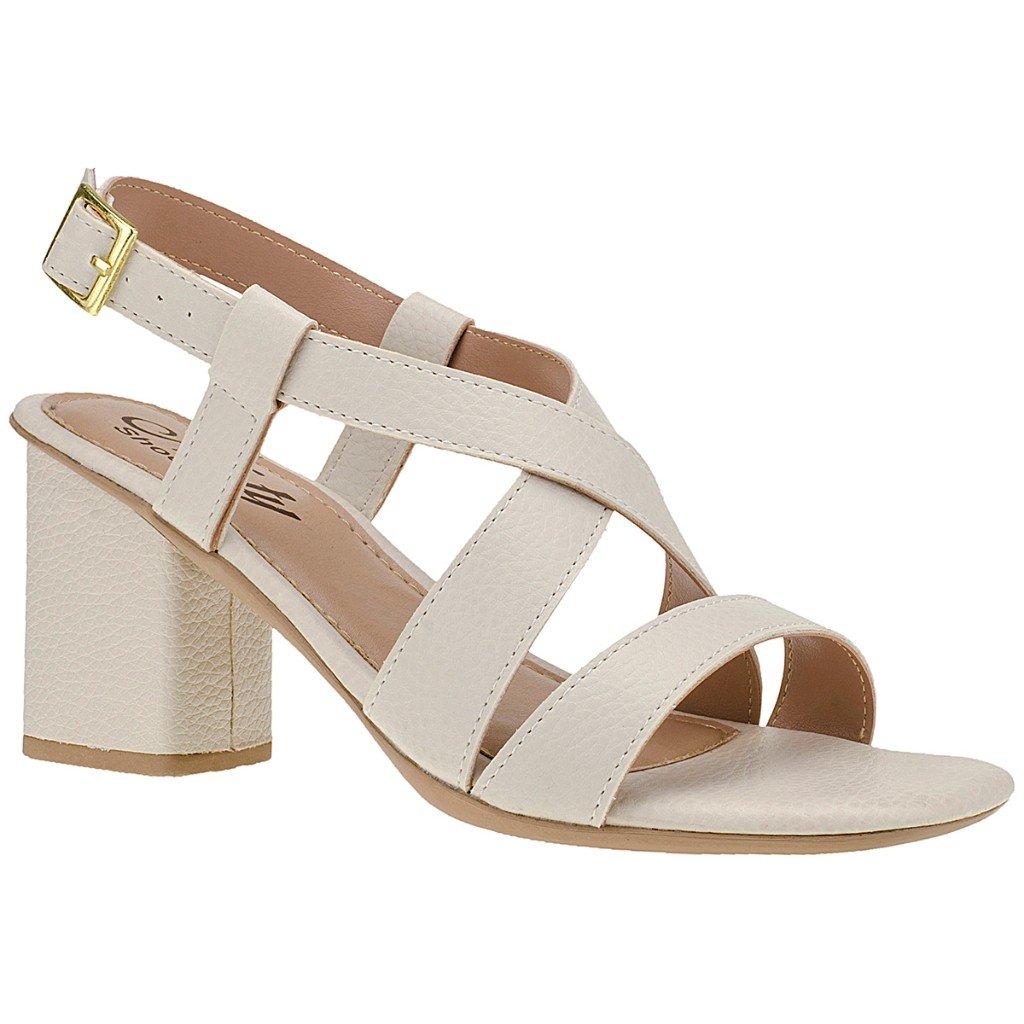 Sandália Off White Casual Feminina Salto Alto Grosso Social Elegante Festa Tamanho Especial