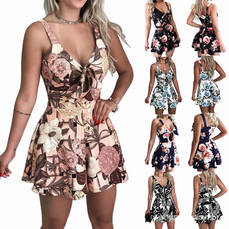 Macacão Curto Estampado Plus Size Com Alça De Renda
