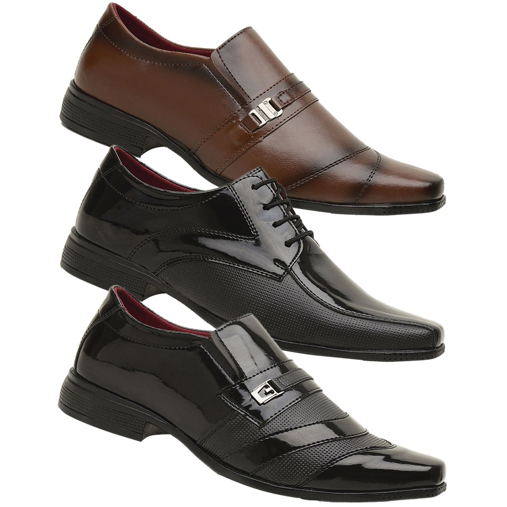 Kit De 3 Pares Sapato Social Masculino