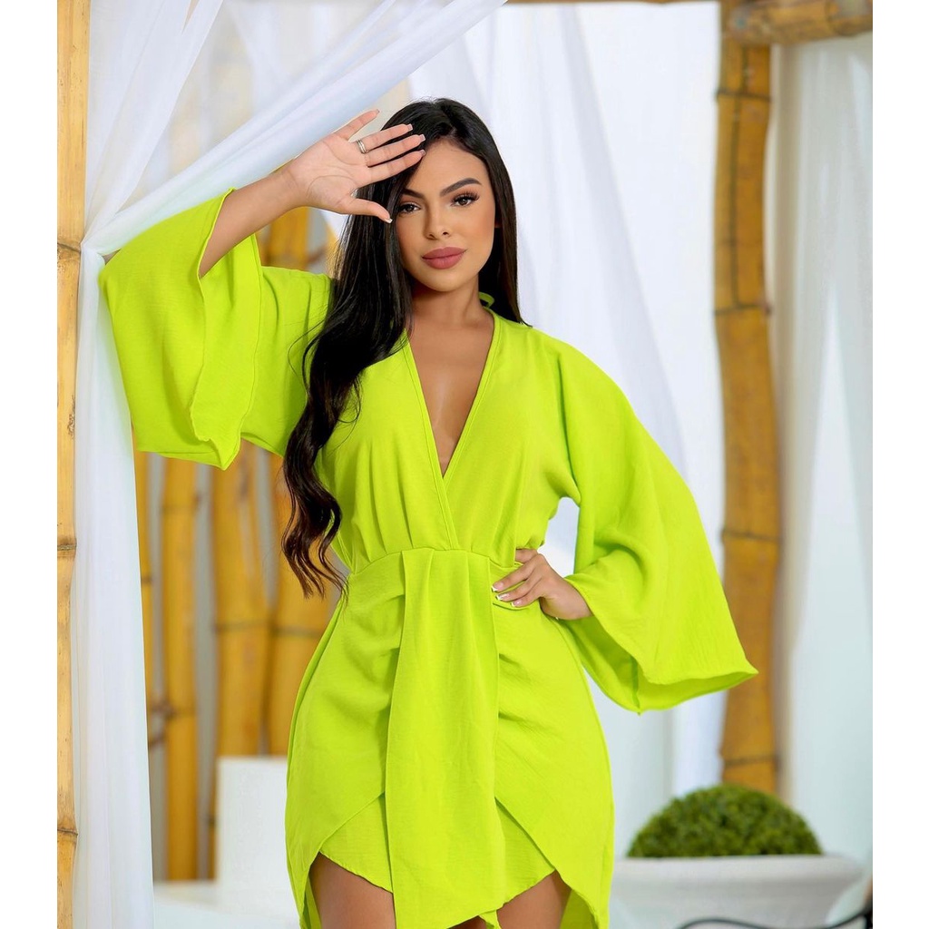 Vestido Curto Feminino De Verão 2022 Sexy Com Decote Em V E Manga Morcego