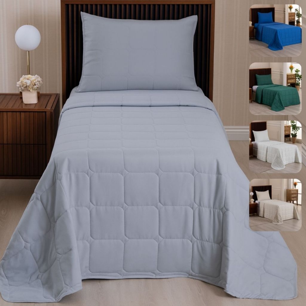 Kit Colcha Cobre Leito Solteiro 2 Peças Percal 400 fios Dupla Face e Matelado - Toque Macio