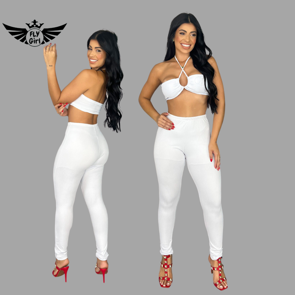 Conjunto Calça Leg mais top cropped multiformas Ribana Canelada