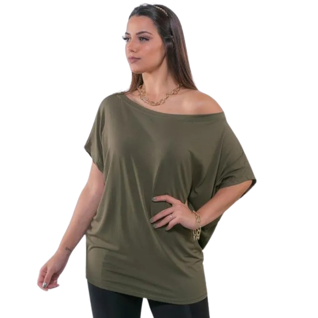 Blusa Básica Morcego Malha Gola Canoa Manga Curta Murici