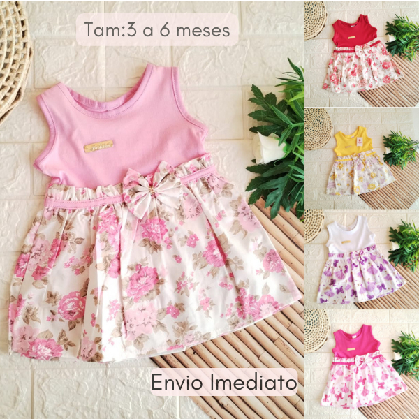 Vestido de Bebe com Pinças e Laço Helena Roupas para Bebe Menina Roupa Infantil Feminino