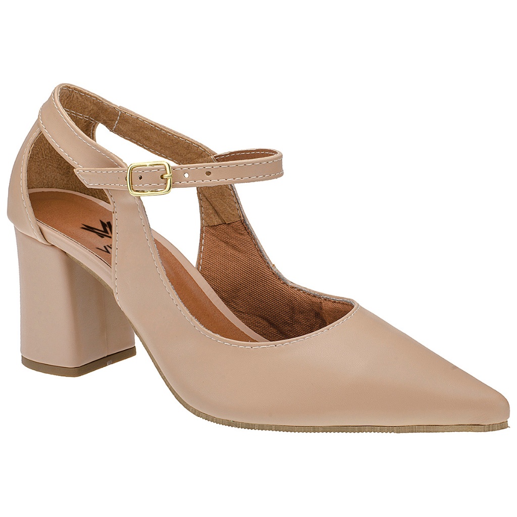 Sapato Social Feminino Scarpin Bico Fino Salto Bloco Confortável com Fivela 18400