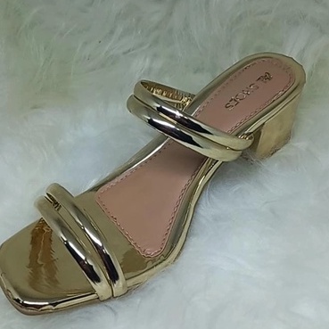 Sandalia Salto Alto Feminina Dourado 2 Tiras Extra Confort
