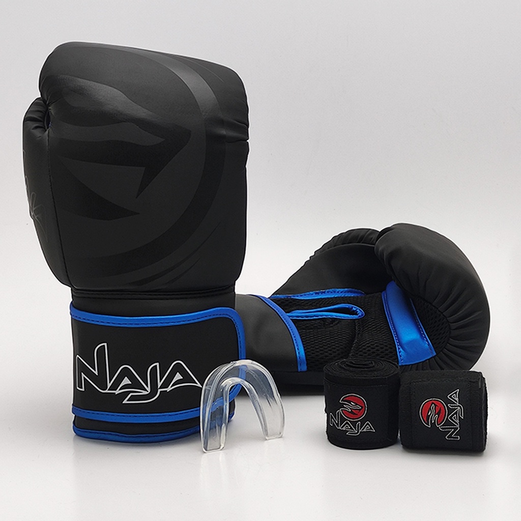 Kit Boxe Muay Thai Naja Black Line + Luva + Bandagem + Bucal