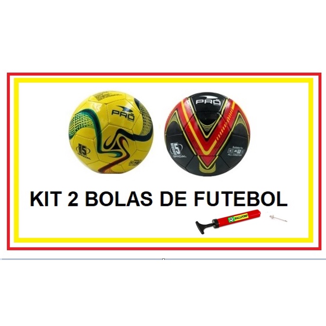KIT - 2 Bolas De Futebol Campo Tam 5 Oficial Couro Sintético + Bomba De Ar E Bico - Cor Sortida com selo do INMETRO produto testado e aprovado. NÃO É POSSÍVEL ESCOLHER A COR DA BOLA, é encaminhado de forma aleatória. Marca: T11 / PRO.