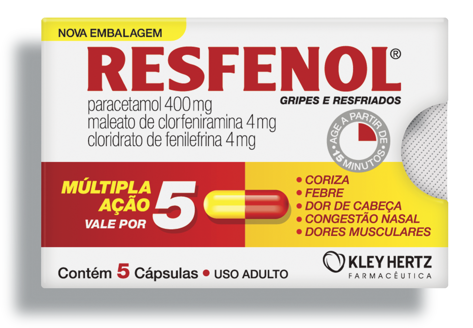 Resfenol Paracetamol 400mg + Cloridrato Fenillefrina 4mg + Maleato de Clorfeniramina 4mg 5 cápsulas