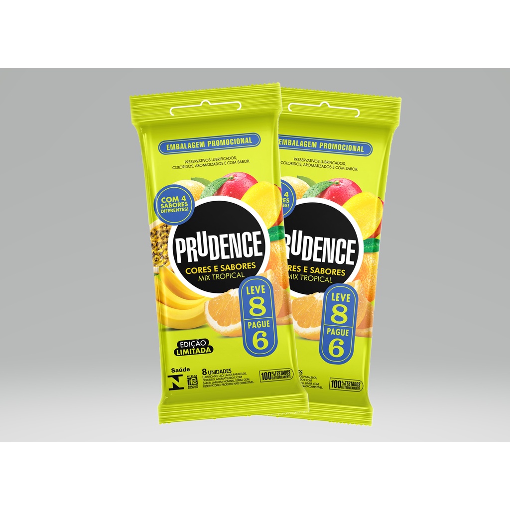 Kit 2 Unidades Preservativo Prudence Cores E Sabores Mix Tropical - Leve 8 e Pague 6