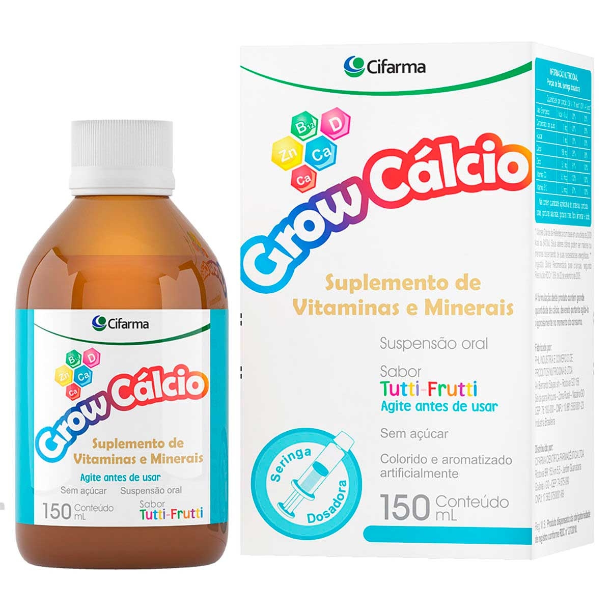 Suplemento Vitamínico Mineral Infantil Grow Cálcio Sabor Tutti-Frutti Suspensão Oral com 150ml + Seringa Dosadora