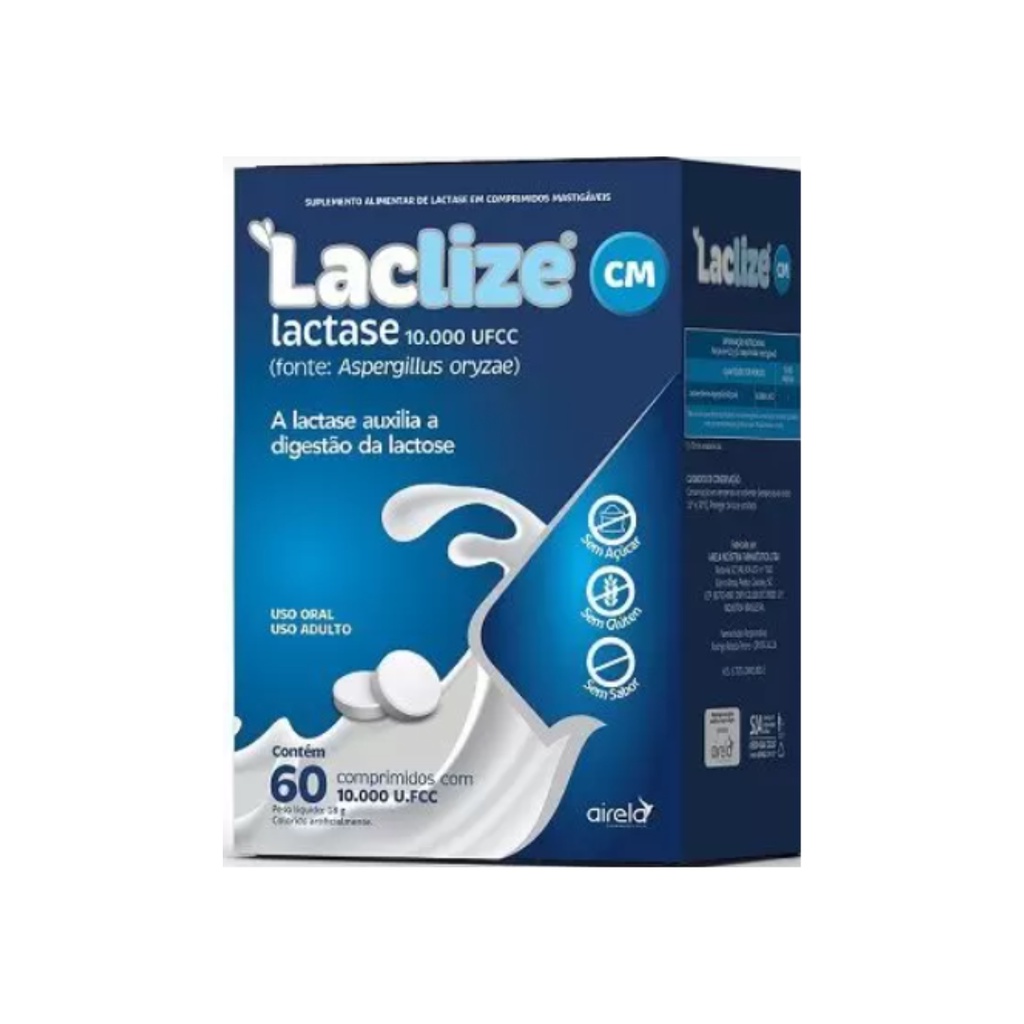 Enzima Lactase 10.000ufcc 60 Comprimidos Mastigáveis Laclize