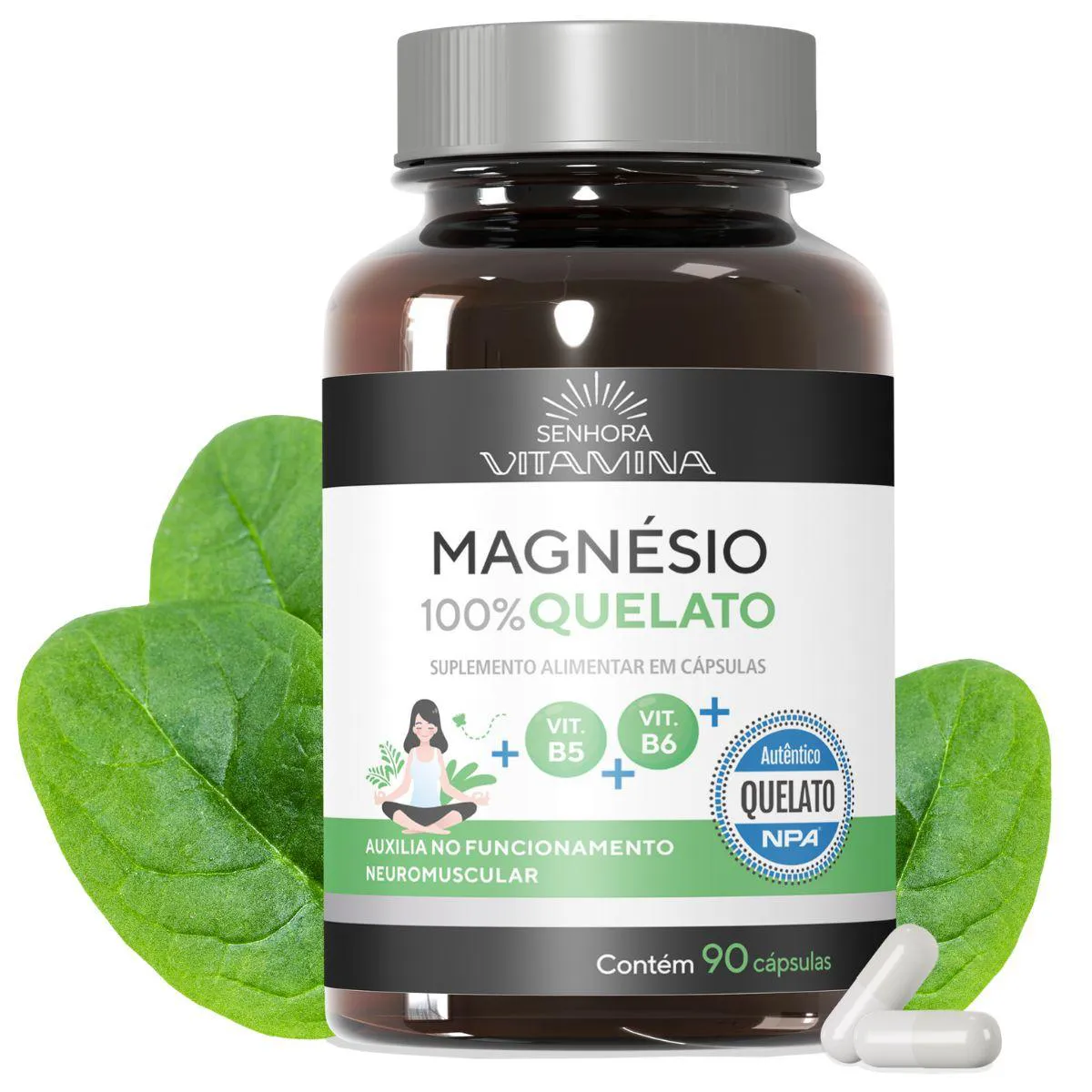 MAGNéSIO 100% QUELATO 350MG COM VITAMINAS B5 E B6 (90 CáPSULAS)