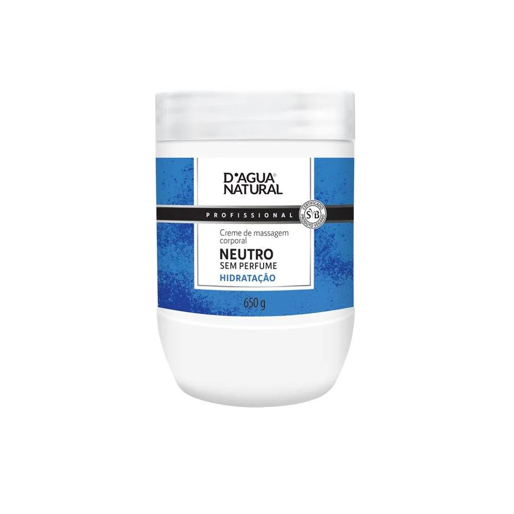 CREME DE MASSAGEM NEUTRO SEM PERFUME DÁGUA NATURAL 650G