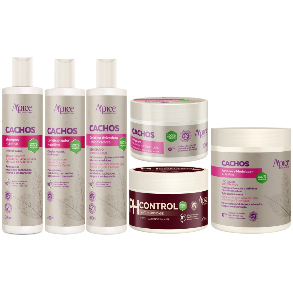 Kit Apse Cachos 5 Itens + Mascara PH Control Tratamento Capilar Completo Cabelo Vegano
