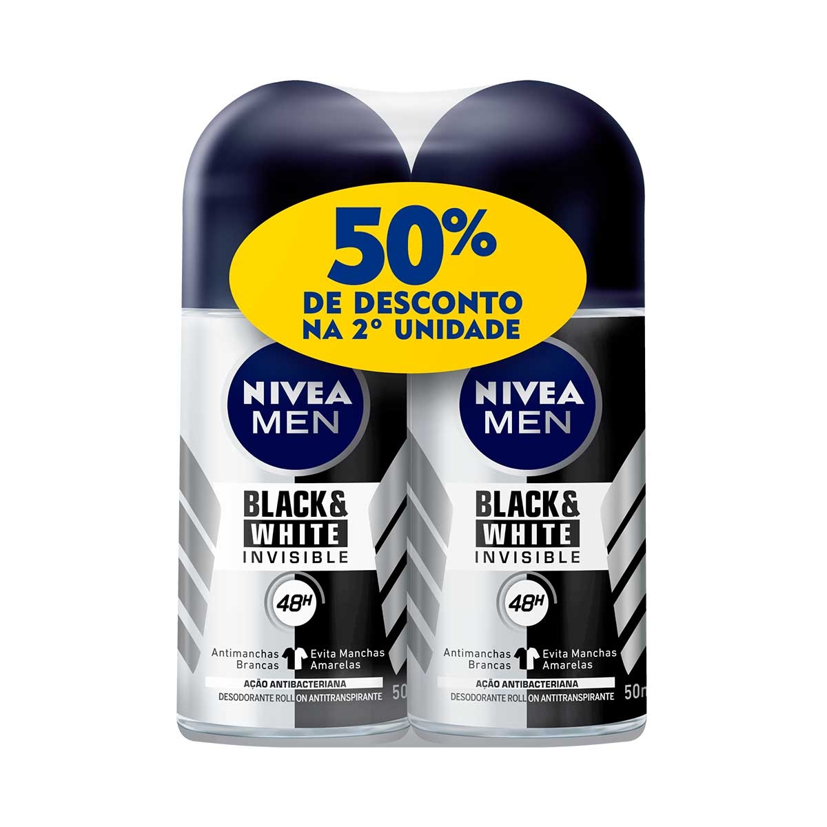 Desodorante Nivea Men Invisible For Black & White Roll-on Antitranspirante 48h com 2 Unidades de 50ml cada + 50% Desconto na 2ª Unidade