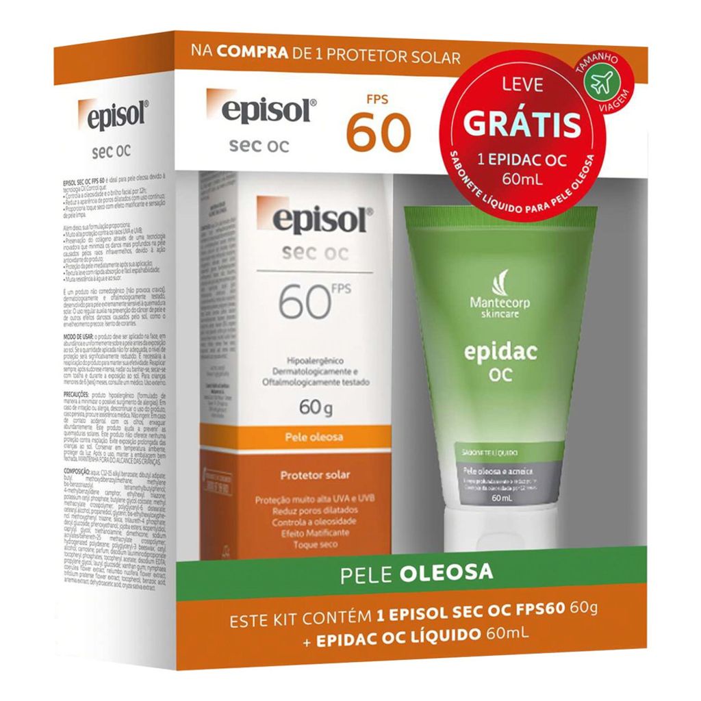 Protetor Solar Episol Sec Oc FPS 60 Pele Oleosa 60g e Sabonete Líquido Epidac Oc 60ml