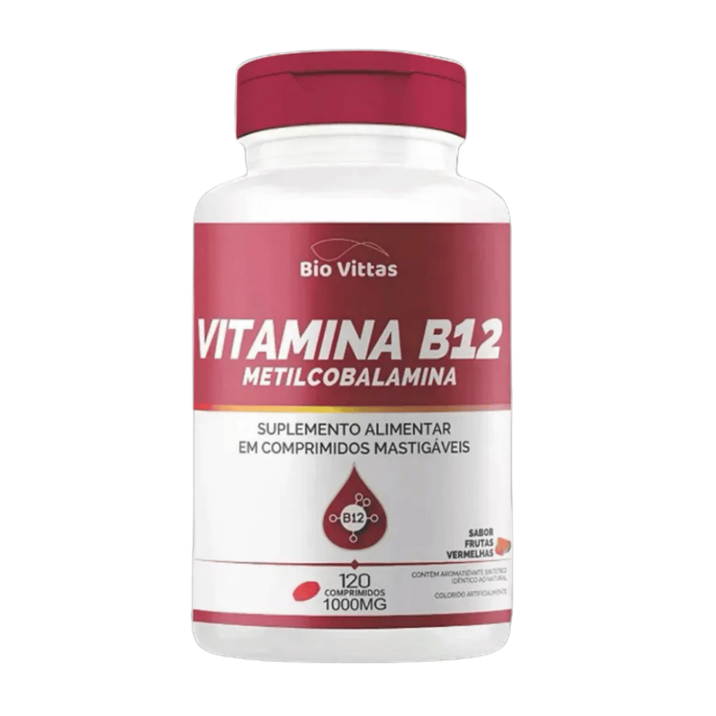 Vitamina B12 Metilcobalamina 120 Comprimidos Mastigáveis Sabor Frutas Vermelhas - Bio Vittas