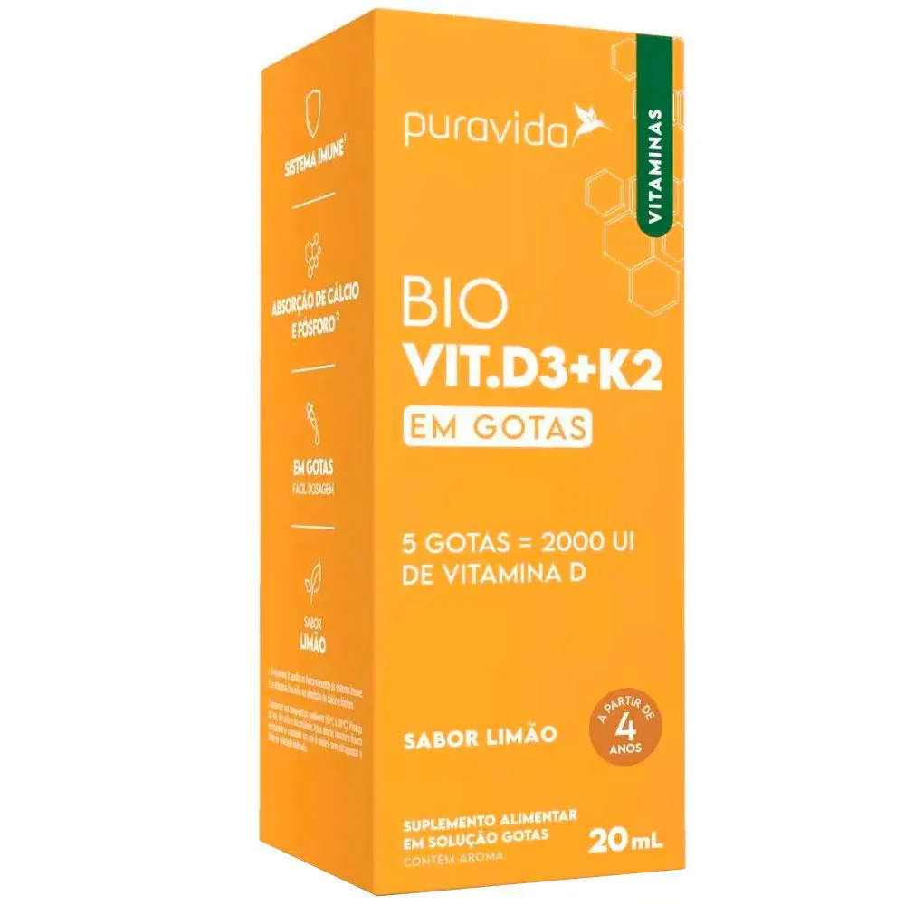 BIO VIT D3 + K2 EM GOTAS - 20ML - SABOR LIMãO - PURA VIDA