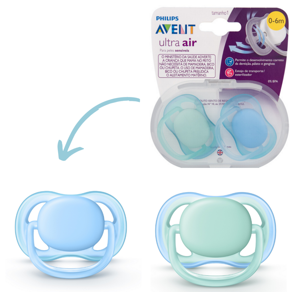 Chupeta Avent Silicone Ultra Air Azul e Verde 6-18m Menino *Promoção*