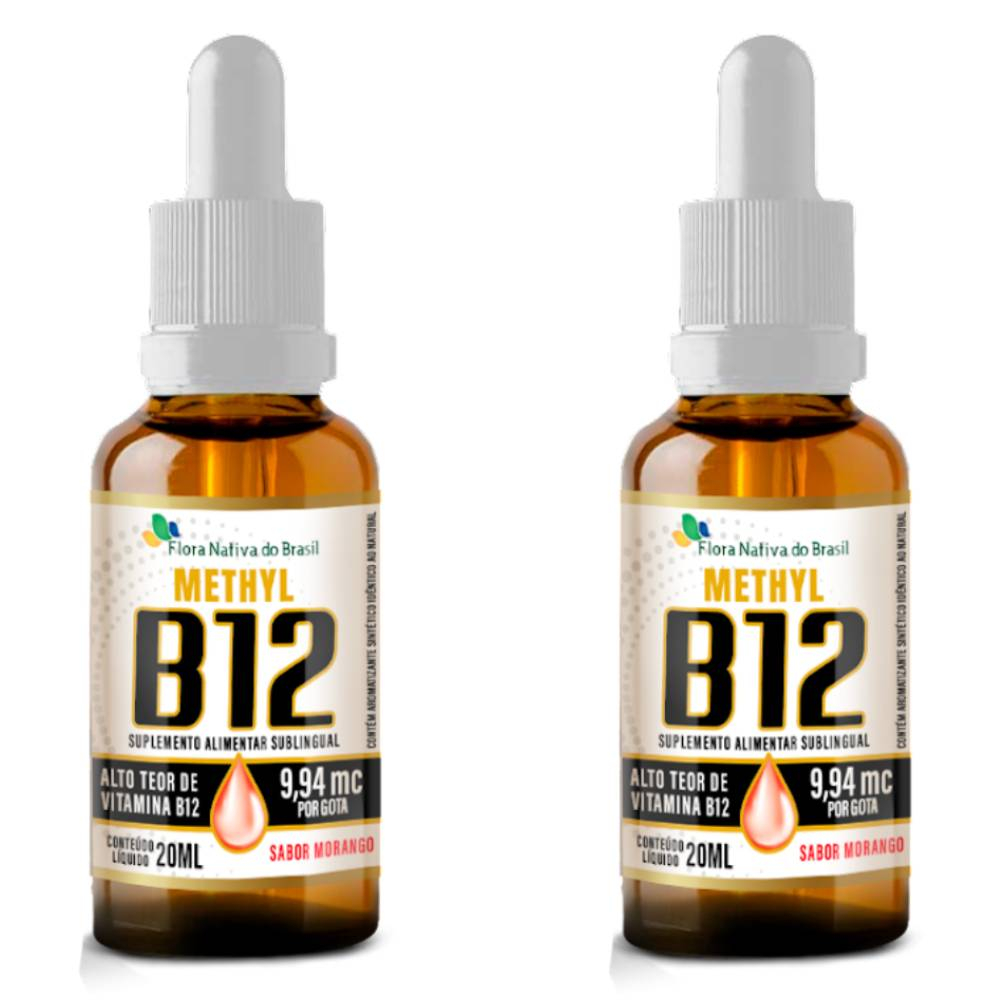 KIT 2X VITAMINA B12 SUBLINGUAL (METILCOBALAMINA) 9,94 MCG POR GOTA 20ML - FLORA NATIVA SABOR:MORANGO
