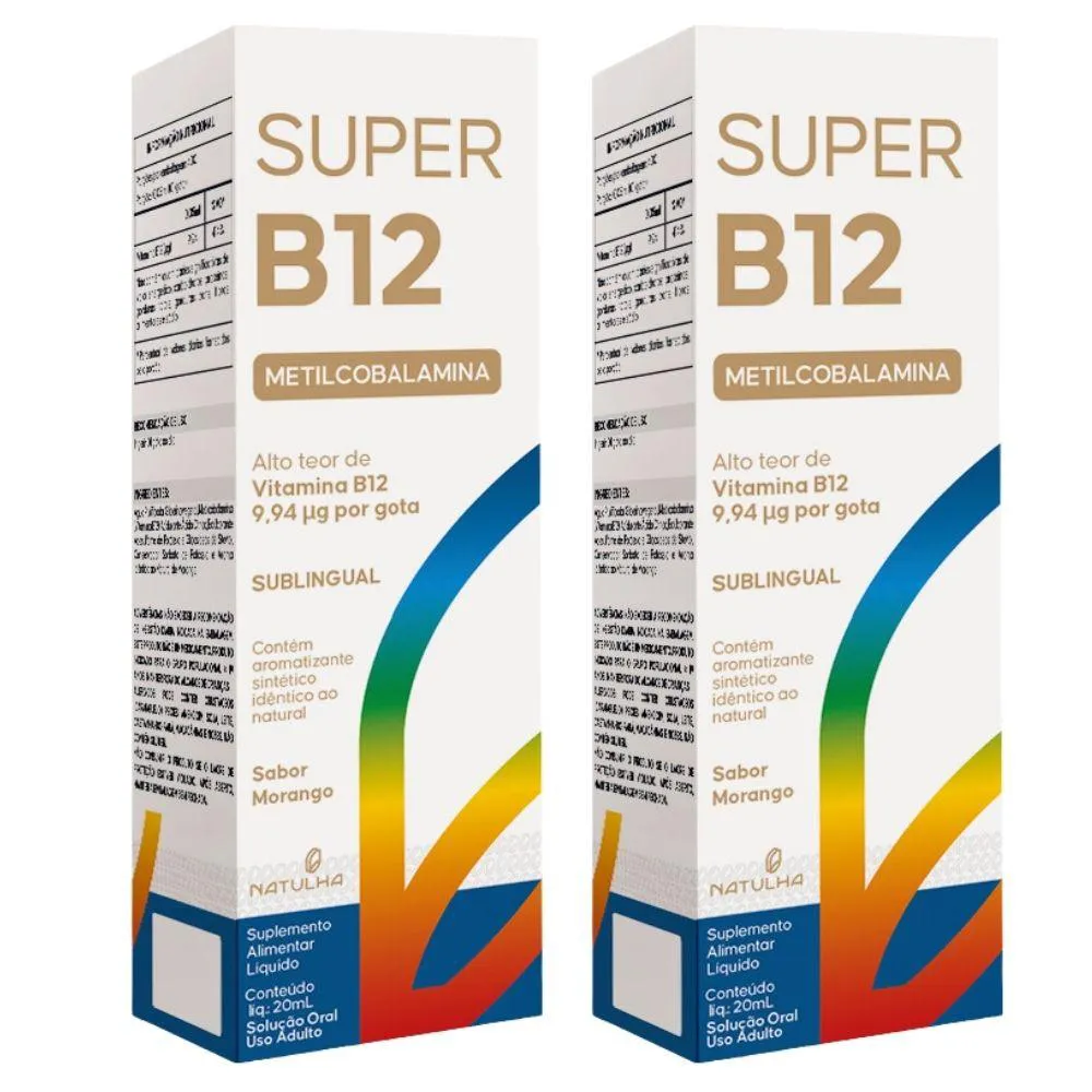 KIT 2X SUPER VITAMINA B12 METILCOBALAMINA SUBLINGUAL 20ML - NATULHA SABOR:MORANGO