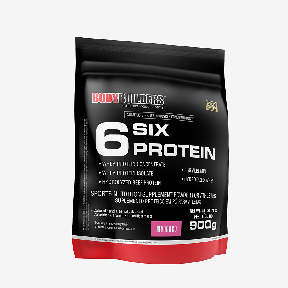 WHEY PROTEIN CONCENTRADO - 6 SIX PROTEIN 900G – BODYBUILDERS SABOR: MORANGO