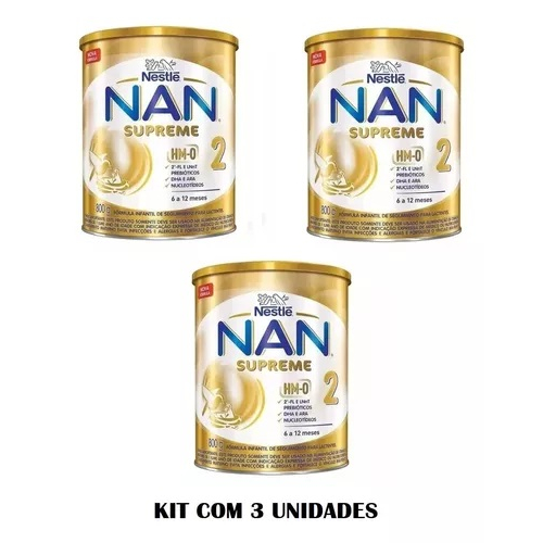 Kit 3 Un Fórmula Infantil Pó Nestle Nan Supreme 2 Lata 800g