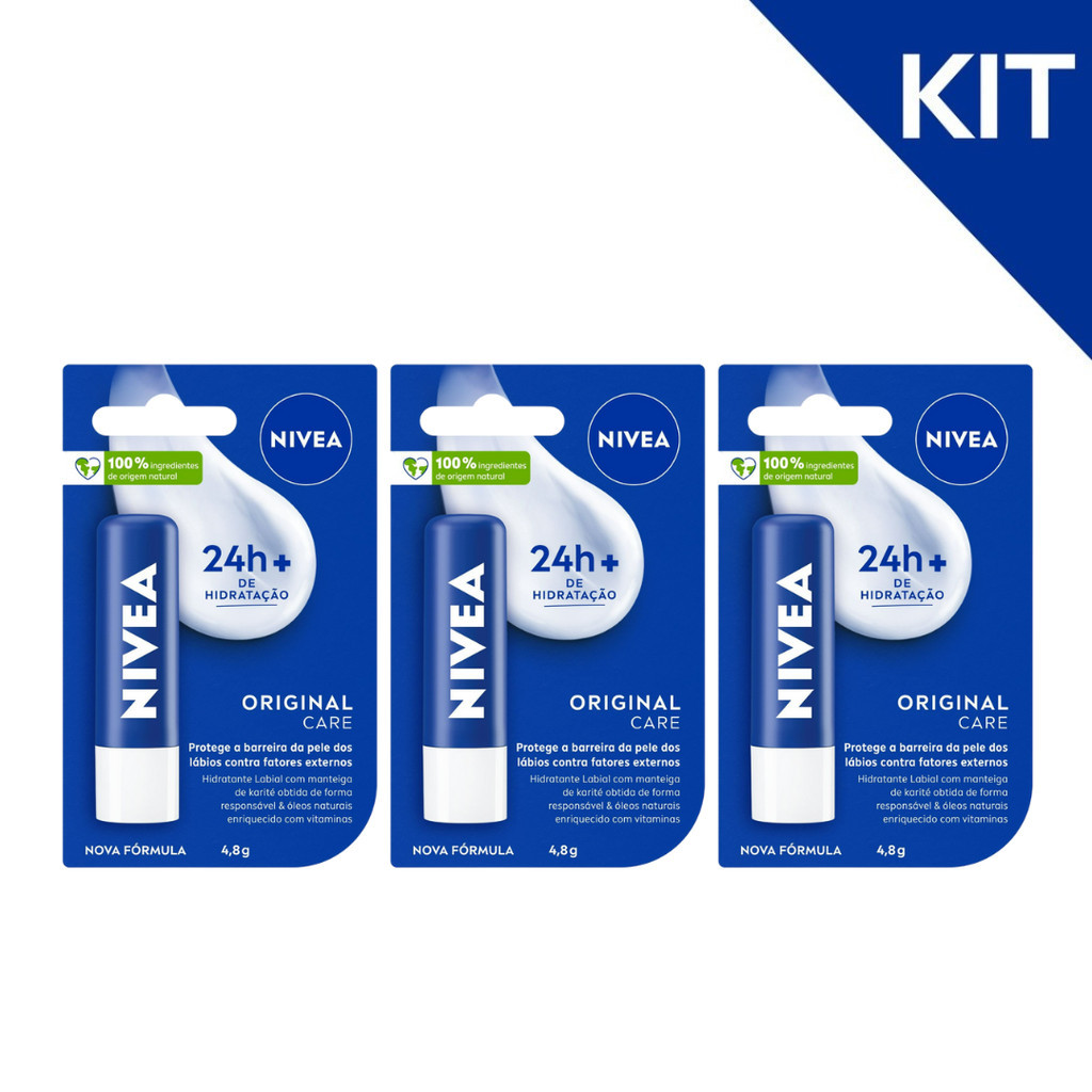 KIT NIVEA Hidratante Labial Original Care 4,8g - 3 Unidades