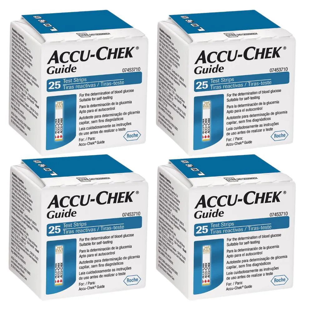 KIT 4X TIRAS ACCU CHEK GUIDE PARA CONTROLE DE GLICEMIA 25 TIRAS