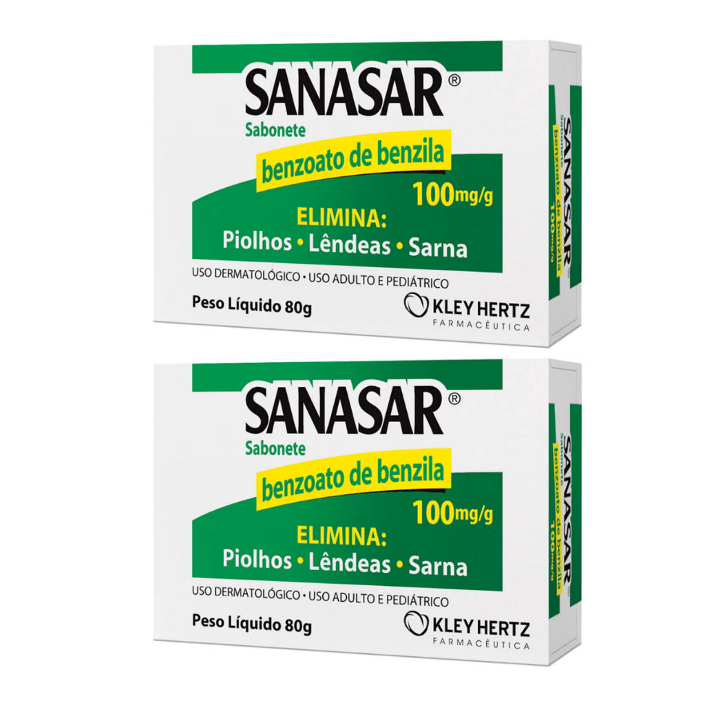KIT COM 2 SANASAR SABONETE 100MG/G 80G PIOLHOS LÊNDEAS SARNA