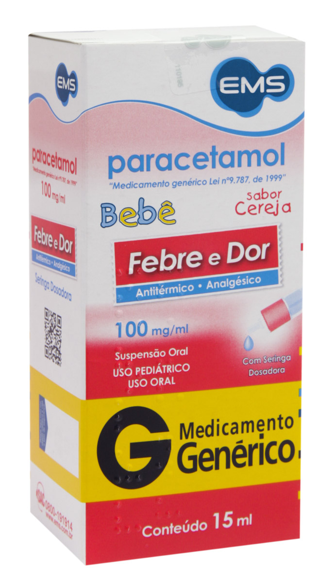 Paracetamol Bebê 100mg/ml Suspensão Oral Sabor Cereja 15ml EMS Genérico