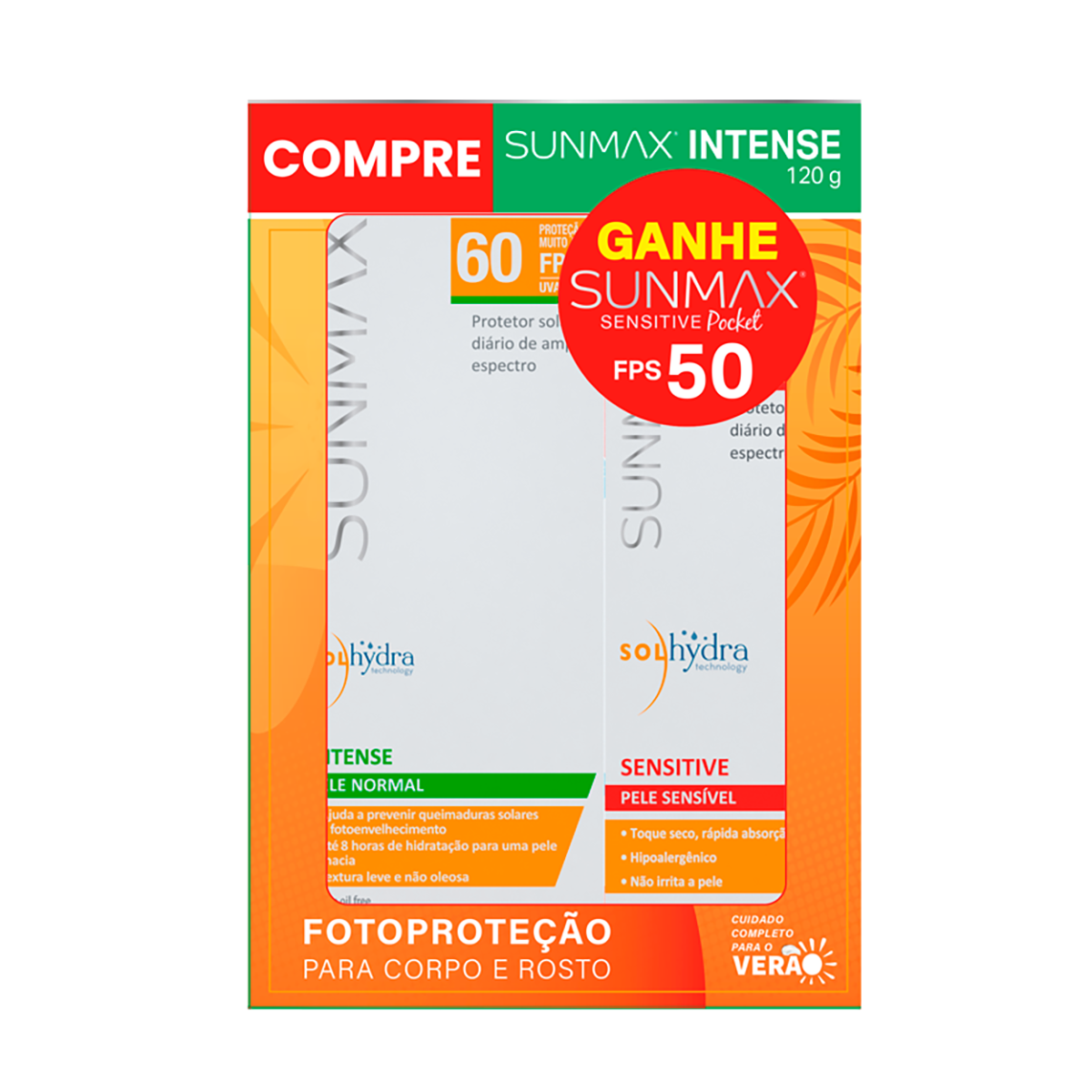 Kit Protetor Solar Sunmax Intense FPS60 120g + Sensitive Pocket FPS50 25ml