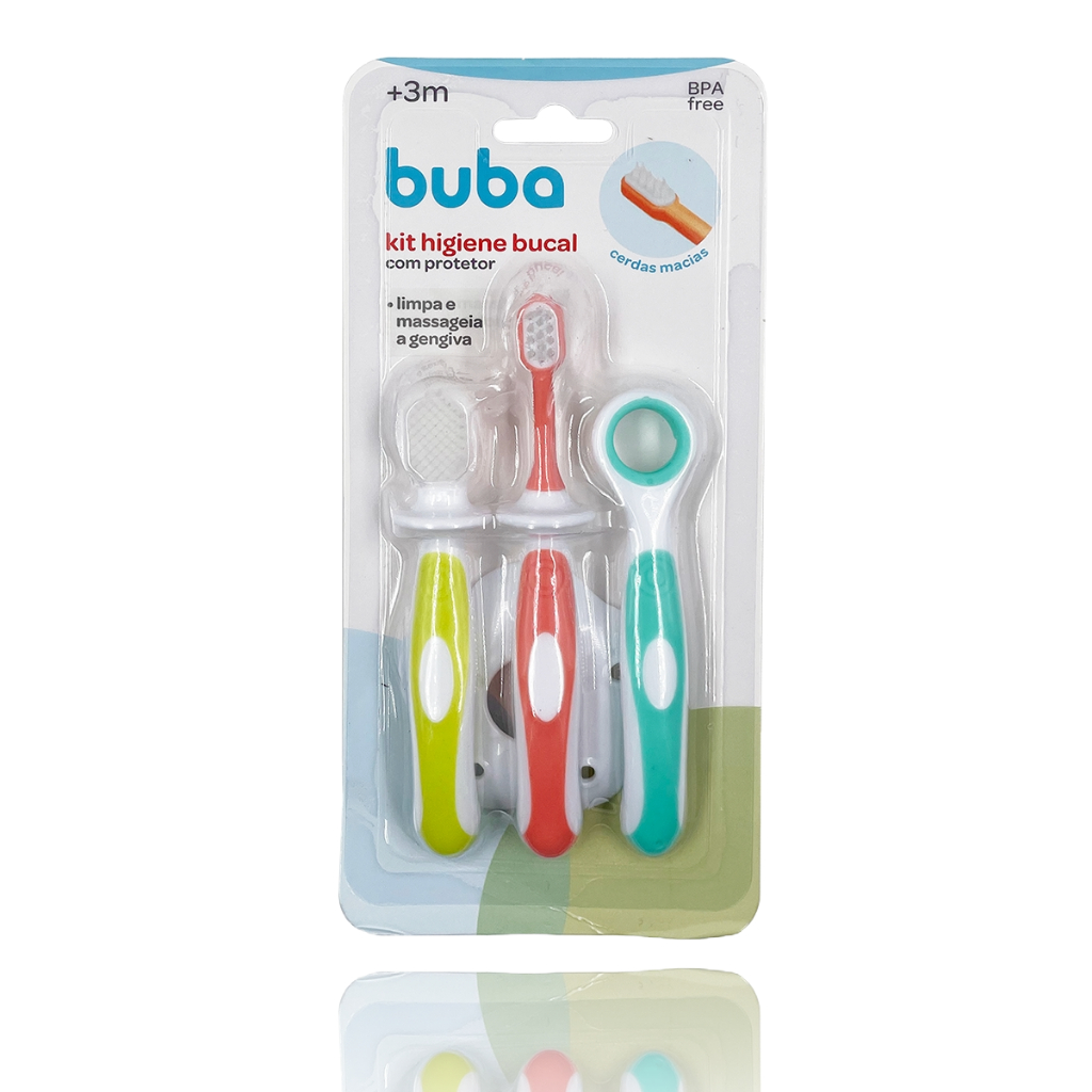 Kit Higiene Escova de Dente Infantil Com Cerdas Macias Massageador Raspador De Lingua - Buba