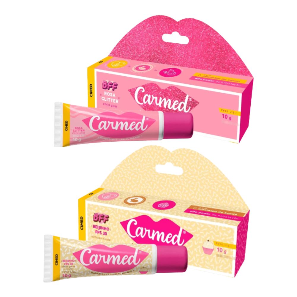 Kit Carmed Labial BFF Rosa Glitter Com Cor Tutti-Frutti + Beijinho FPS 30 Incolor 10g Cada Efeito Cimed Hidratante Labial Gel