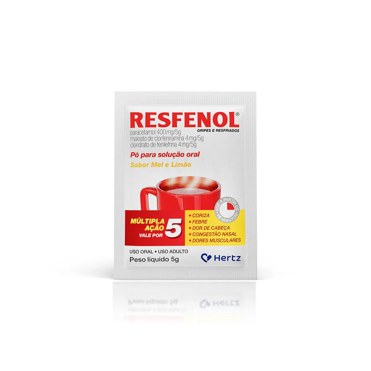 Resfenol Paracetamol 400mg/5g + Cloridrato Fenillefrina 4mg/5g + Maleato de Clorfeniramina 4mg/5g Sabor Mel e Limão Pó para Solução 5g