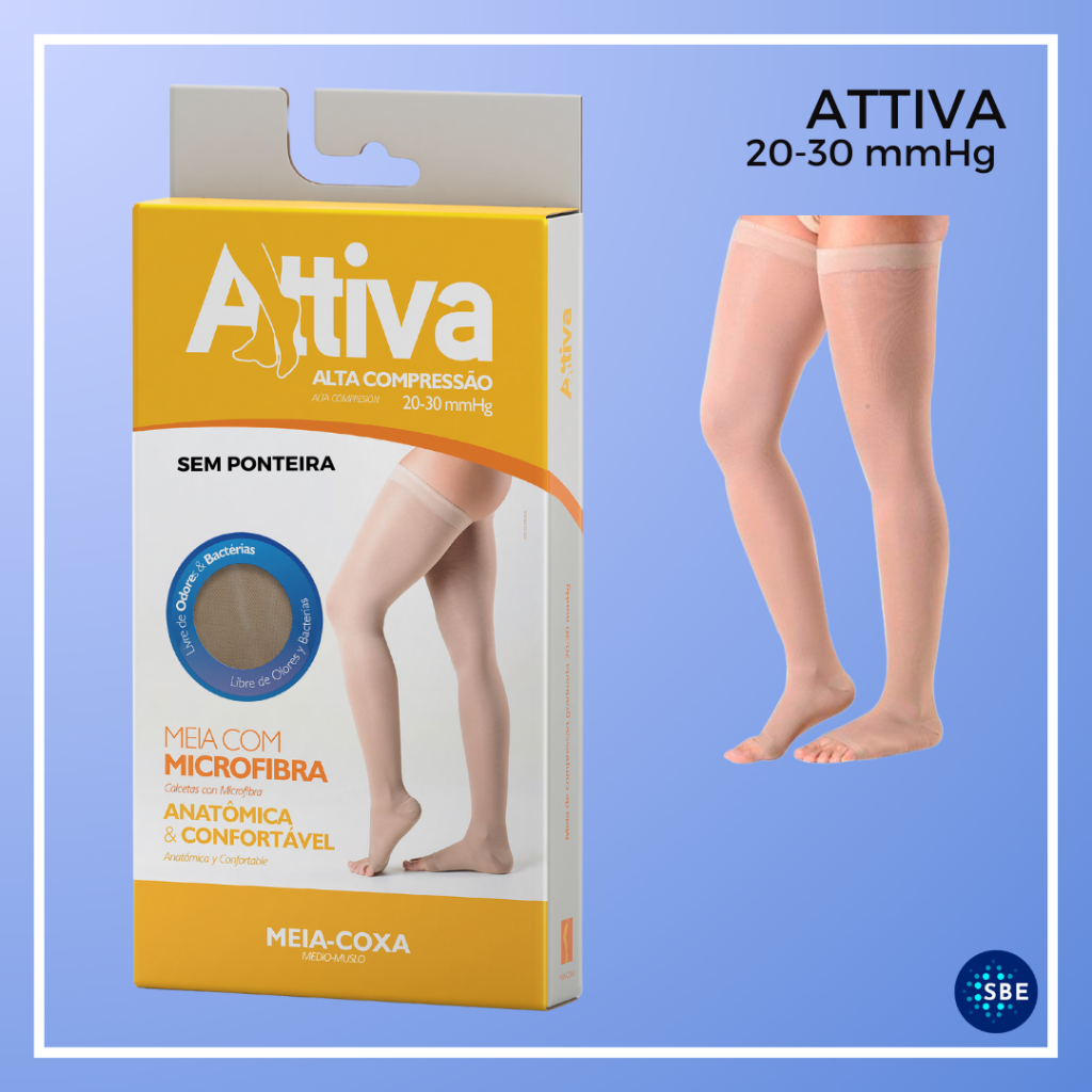 Meia Coxa Elástica 7/8 - Meias Varizes Alta Compressão 20-30mmHg SIGVARIS Attiva Sem ponteira