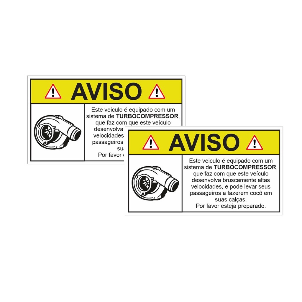 Adesivo Aviso Veículo Com Turbo Compressor Supercharger 2 UNIDADES
