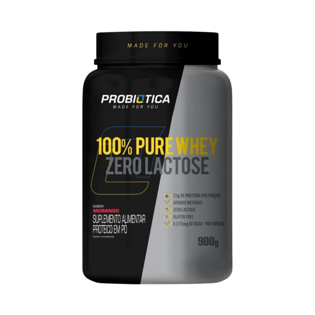 KIT 2 WHEY PROTEIN ZERO LACTOSE 100% PURE 900G - PROBIOTICA 900 G Morango