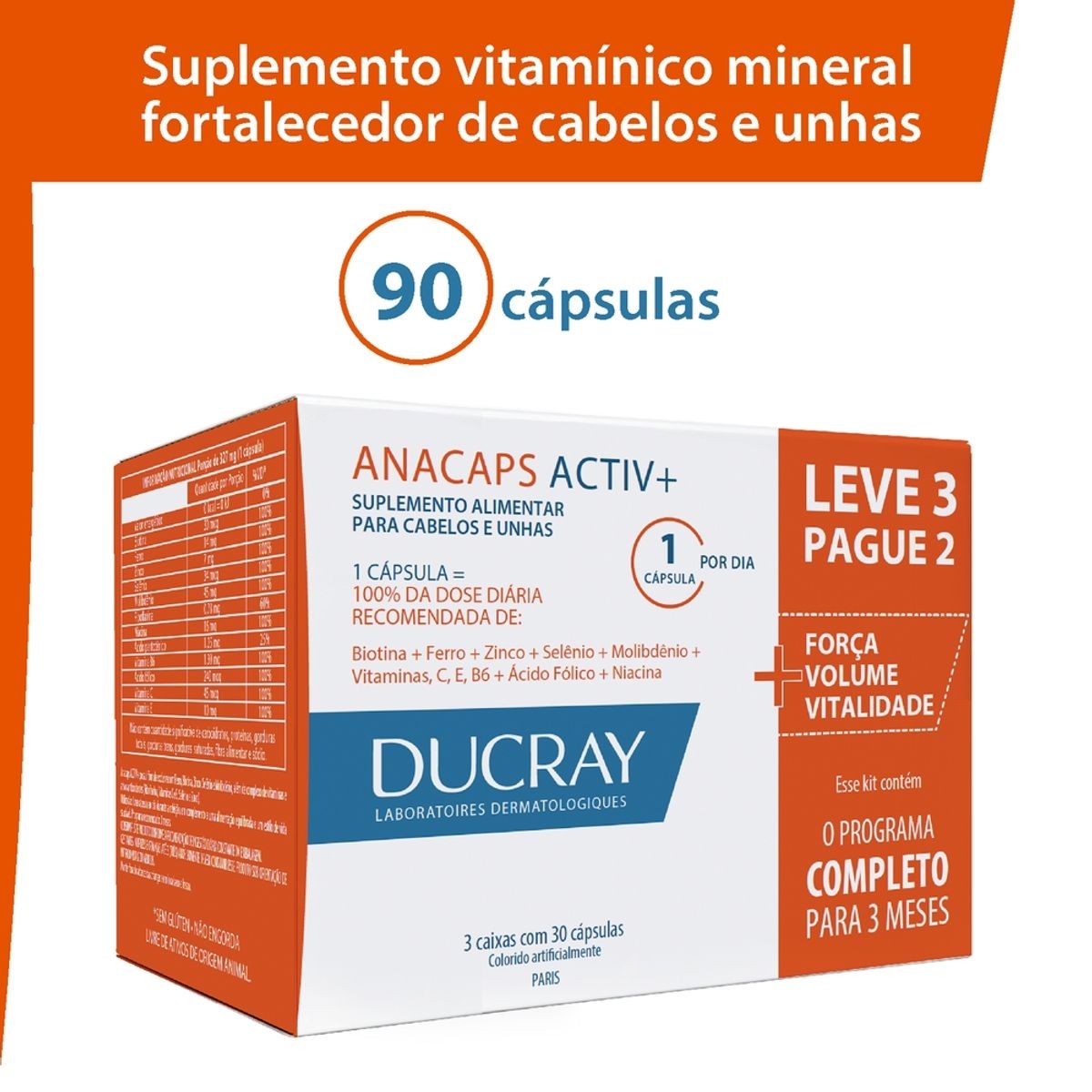 KIT IMECAP HAIR CABELOS E UNHAS SUPLEMENTO ALIMENTAR LEVE 90 CáPSULAS PAGUE 60