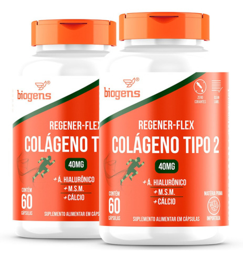 KIT 2X REGENER FLEX, COLáGENO TIPO 2, CáLCIO, 60 CPS BIOGENS SEM Sabor