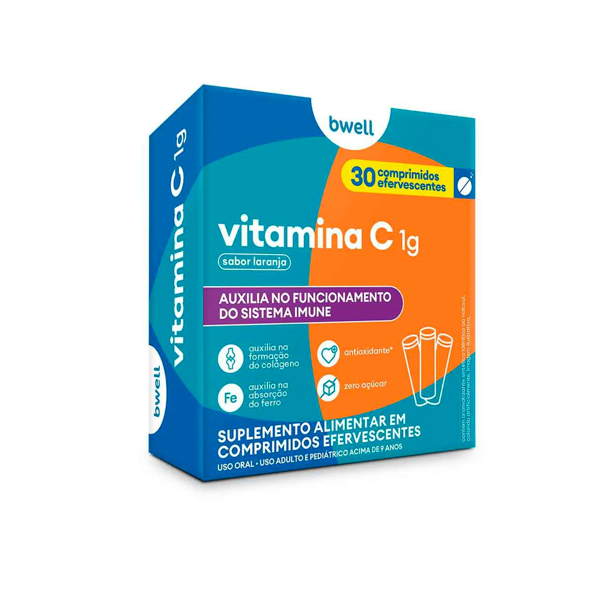 Vitamina C Efervescente 1g bwell Sabor Laranja 30 comprimidos
