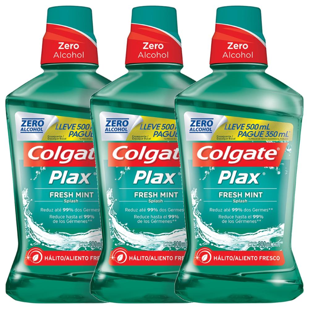 Kit 3 Enxaguante Sem Álcool Bucal Colgate Plax Fresh Mint 500ml Leve 500ml Pague 350ml