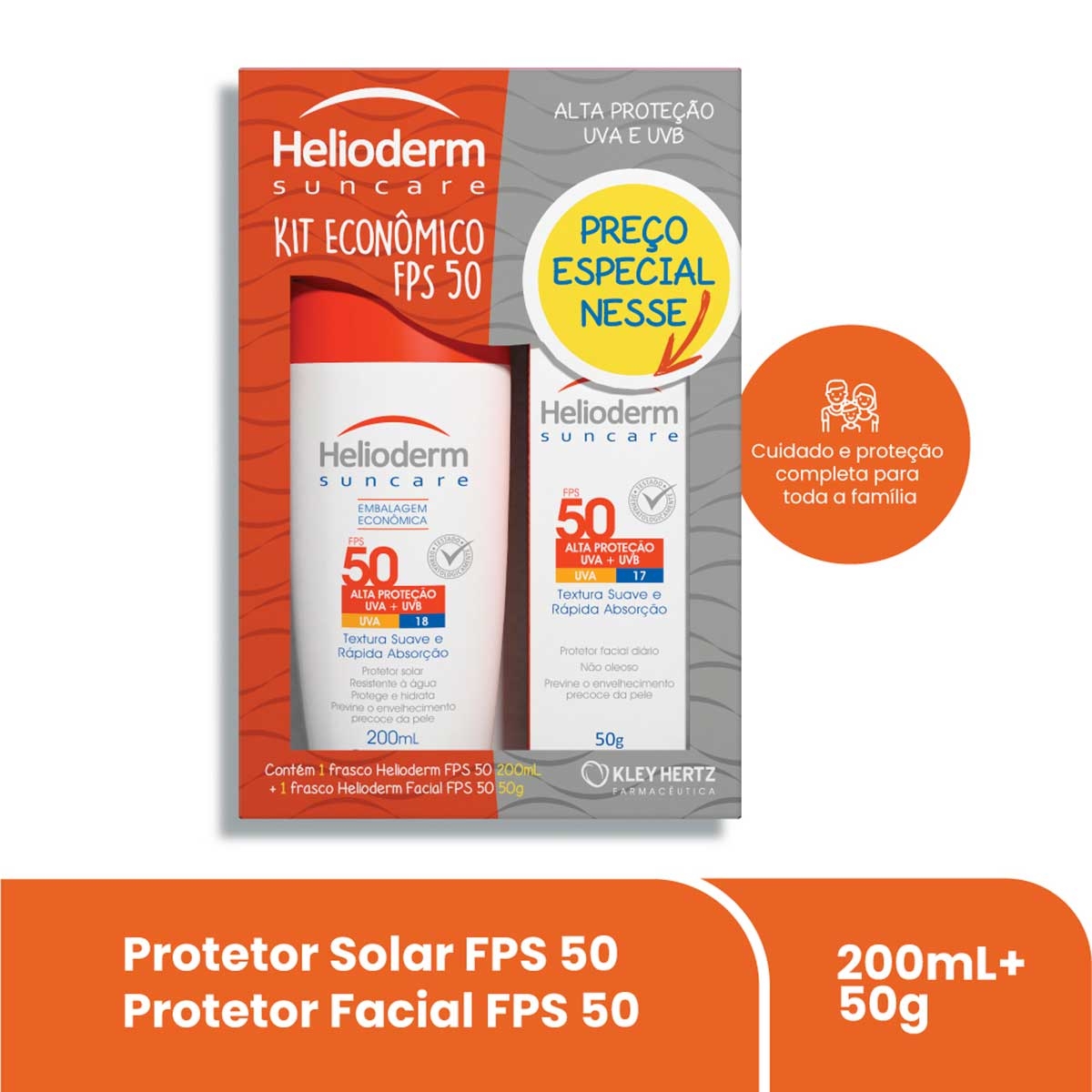 Kit Helioderm Suncare Protetor Solar Corporal FPS50 com 200ml + Protetor Facial FPS50 com 50g