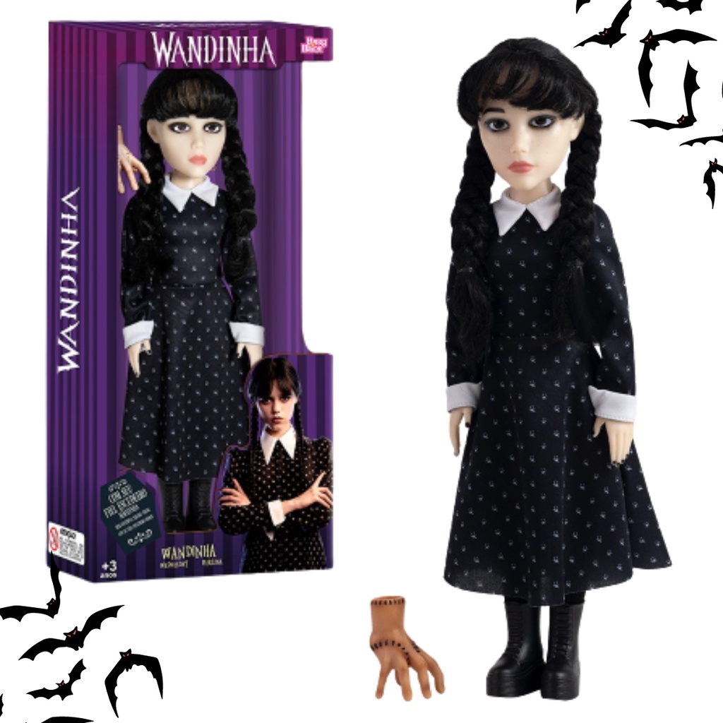 Boneca Wandinha Com Mãozinha Original 44cm Infantil Familia Addams Vinil Articulada Menina Crianças Com Acessório Brinquedo Detalhes Realista Bonecas Série Netflix Brinquedos Baby Brink